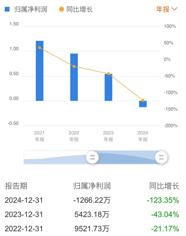 业绩方面,2022年~2024年,公司的净利润已连续三年下滑,2024年甚至出现了千万元亏损。